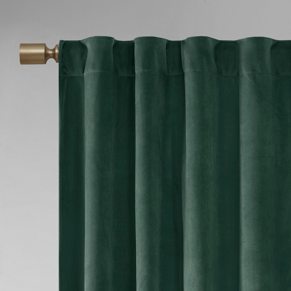 Colt Room Darkening Metallic Printed Poly Velvet Rod Pocket Back Tab Window Panel Pair Green