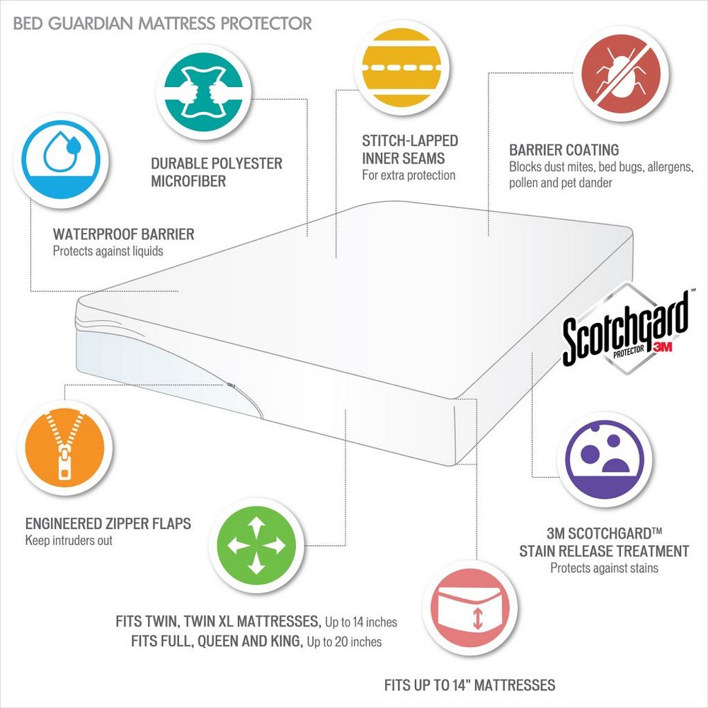 Bed Guardian 3M Scotchgard Waterproof Mattress Protector White King