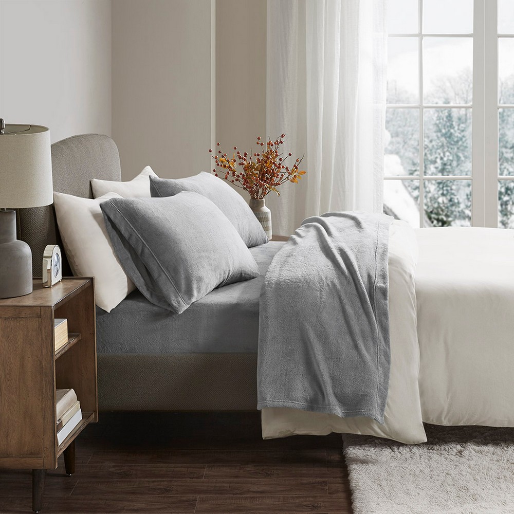 Soloft Plush Micro Plush Sheet Set Grey Twin