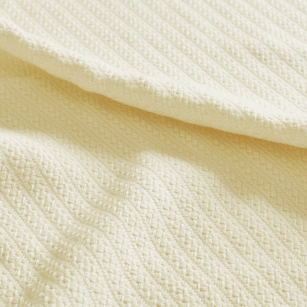 | Madison Park Full/Queen 1 Blanket: 90"W x 90"L 100% ring spun cotton Casual Style Includes 1 Piece(s) Machine wash cold with like colors. Tumble dry low. Do not iron. Do not bleach. Cozy up in one of the softest cotton blankets on the market. We take the highest quality cotton and spin it into a very smooth and soft material that we call Liquid Cotton. This blanket's cotton material virtually eliminates pilling to give you a lasting blanket that you will not have to replace year after year. Our Liquid Cotton blanket has reduced shrinkage compared to other cotton blankets. Cotton naturally wicks away moisture and is breathable which helps regulate your temperature at night, giving you year round comfort. This blanket is also OEKO-TEX certified, meaning it does not contain any harmful substances or chemicals to ensure quality comfort and wellness. |