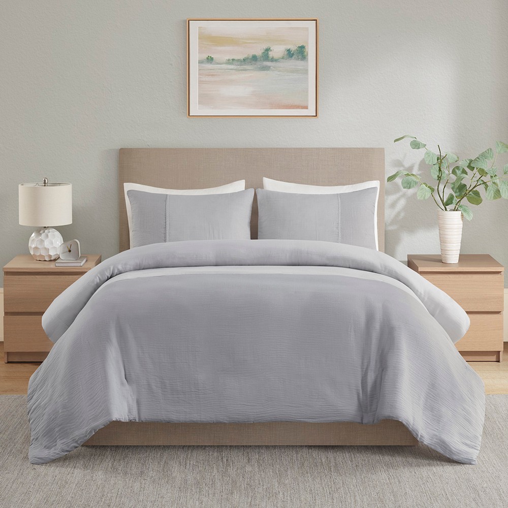 Miro 3 Piece Gauze Oversized Duvet Cover Set Gray King