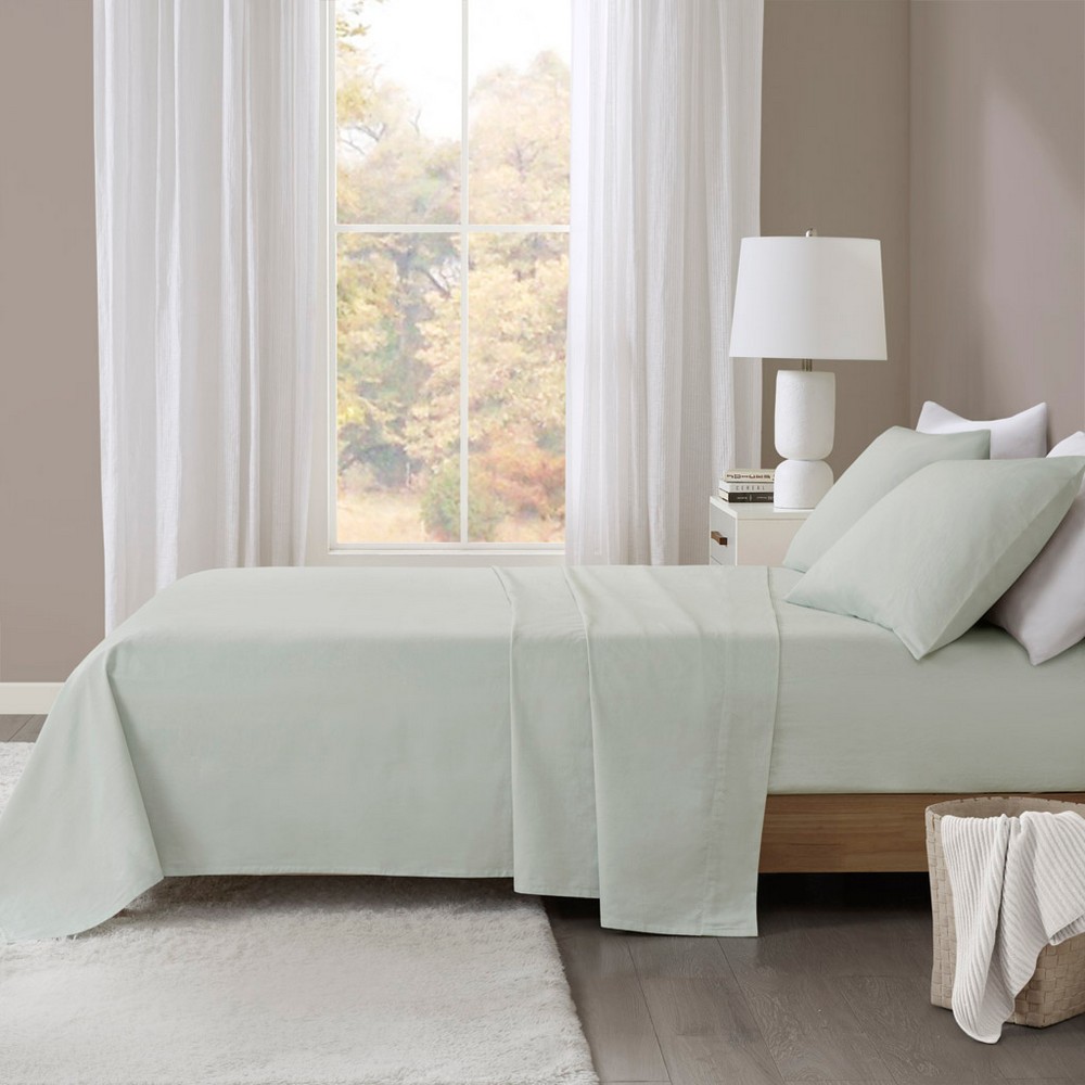 Oversized Flannel 4 Piece Sheet Set Seafoam Solid Queen
