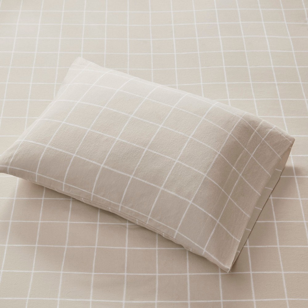 Oversized Flannel 4 Piece Sheet Set Beige Windowpane King