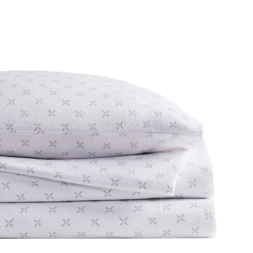 Oversized Flannel 4 Piece Sheet Set Grey Petals King