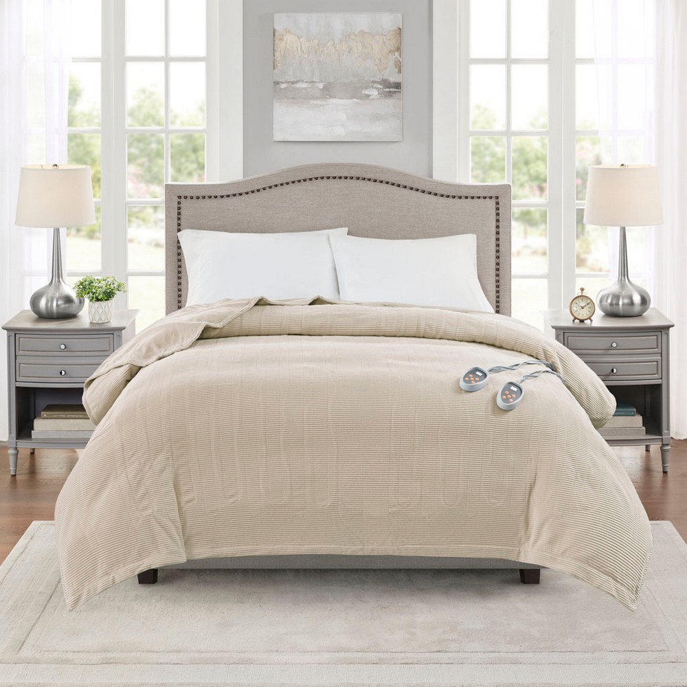 Olliix Electric Micro Fleece Heated Blanket Beige