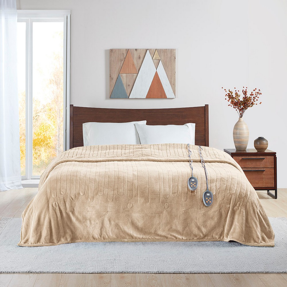 | Beautyrest Queen 1 Blanket: 84x90" FACE: SOLID MICROLIGHT PLUSH, 100% POLYESTER REVERSE: SOLID MICRO BERBER, 100% POLYESTER Casual Style Includes 1 Piece(s) MACHINE WASH COLD, GENTLE CYCLE, AND SEPARATELY. DO NOT BLEACH. TUMBLE DRY LOW, REMOVE PROMPTLY. DO NOT IRON. IF THERE IS NO FREE MOVEMENT IN THE WASHER OR DRYER, USE LARGE CAPACITY COMMERCIAL WASHER/DRYER. Sleep in ease in our Beautyrest Heated blanket with Secure Comfort Technology, which is designed to virtually eliminate ElectroMagnetic Field emissons. The soft flexible wires and ultra-soft microlight plush fabric ensures your comfort. It reverses to a soft berber that adds extra warmth and loft. The heated blanket features 10 hour auto shut off and has 20 different temperature settings so you can customize the precise temperature you want. It's also machine washable for easy care and OEKO-TEX certified, meaning it does not contain any harmful substances or chemicals to ensure quality comfort and wellness. Twin and Full size have one controller, Queen and King size have 2 controllers. Includes manufacturer’s 5-year warranty. |