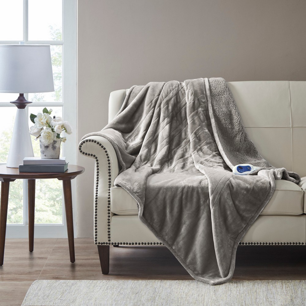 | Beautyrest 60x70" 1 Throw: 60x70" FACE: SOLID MICROLIGHT, 100% POLYESTER; REVERSE: SOLID MICRO BERBER, 100% POLYESTER Casual Style Includes 1 Piece(s) MACHINE WASH COLD, GENTLE CYCLE, AND SEPARATELY. DO NOT BLEACH. TUMBLE DRY LOW, REMOVE PROMPTLY. DO NOT IRON. IF THERE IS NO FREE MOVEMENT IN THE WASHER OR DRYER, USE LARGE CAPACITY COMMERCIAL WASHER/DRYER. Immerse yourself in comfort in the BeautyRest Heated Microlight reverse to Berber Throw. This heated throw utilizes state of the art Secure Comfort technology that adjusts the temperature of your blanket based on overall temperature, spot temperatures and the ambient temperature of your room, ensuring a consistent flow of warmth. This unique technology also emits virtually no electromagnetic field emissions, so you can snuggle up with confidence. This throw is oversized, nearly a foot larger in the length and width compared to standard heated throws. The ultra soft microlight plush fabric combines with billowy berber in this cozy, comfortable throw. Features 3 heat settings and 2 hour auto shut off. This throw is machine washable for easy care and OEKO-TEX certified, meaning it does not contain any harmful substances or chemicals to ensure quality comfort and wellness. Includes manufacturer’s 5-year warranty. |