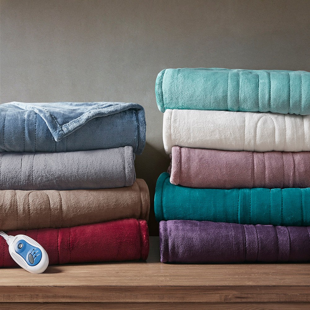 | Beautyrest 60x70" 1 Heated Throw: 60"W x 70"L face and back: solid microlight, 100% poly Casual Style Includes 1 Piece(s) Machine Wash Our heated throw utilizes state of the art Secure Comfort heated technology that adjusts the temperature of your throw based on overall temperature, spot temperatures and the ambient temperature of your room, ensuring a consistent flow of warmth. This unique technology also emits virtually no EMF emissions, so you can snuggle up with confidence. This throw is oversized, nearly a foot larger in the length and width compared to standard heated throws. The ultra soft microlight plush fabric creates a cozy, comfortable throw.It features 3 heat settings and 2 hour auto shut off. This throw is machine washable for easy care and OEKO-TEX certified, meaning it does not contain any harmful substances or chemicals to ensure quality comfort and wellness. Includes manufacturer’s 5-year warranty. |