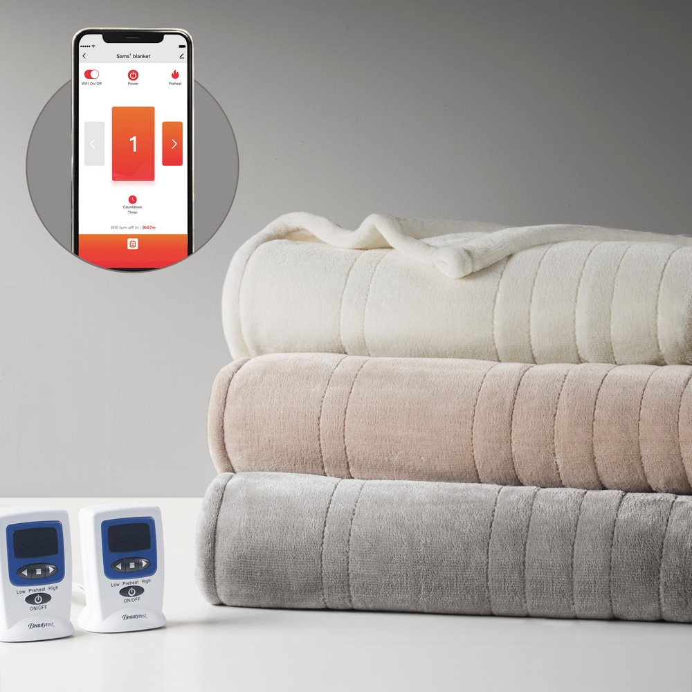 Relax in comfort with the convenience and ease of this Wi-Fi compatible heated blanket. This blanket can be controlled via the traditional controller or through a free downloadable app, and is also compatible with voice commands through Google Home and Alexa. Featuring 20 heat settings and a 10-hour automatic shutoff, this machine washable blanket is also Oeko-Tex certified, meaning it does not contain any harmful substances or chemicals to ensure quality comfort and wellness.