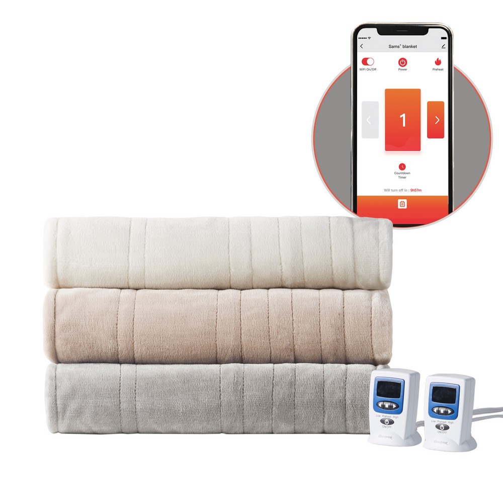 Relax in comfort with the convenience and ease of this Wi-Fi compatible heated blanket. This blanket can be controlled via the traditional controller or through a free downloadable app, and is also compatible with voice commands through Google Home and Alexa. Featuring 20 heat settings and a 10-hour automatic shutoff, this machine washable blanket is also Oeko-Tex certified, meaning it does not contain any harmful substances or chemicals to ensure quality comfort and wellness.
