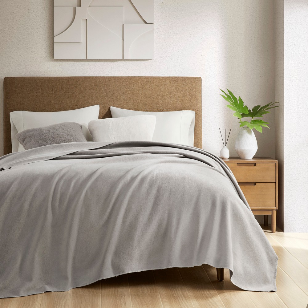 Andaz Solid Cotton Blanket Grey Full Queen