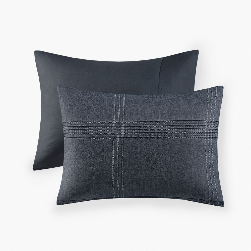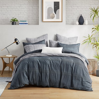 | Croscill Casual Full/Queen 1 Duvet: 90"W x 92"L 2 Standard Shams: 20"W x 26"L (2) Duvet and sham: 62% Cotton/ 38% Lyocell, cotton solid back. Duvet with wood logo button closure, ties inside 4 corners, Sham with overlap closure at back Casual Style Includes 1 Piece(s) Machine washable Anders utilizes a waffle weave technique to create an oversized, airy plaid design. It is inspired by industrial architecture and taps right into the most updated trends. With the garment-wash technique, the dark charcoal coloration creates a highly dramatic contrast and enhances the texture of the pattern. |