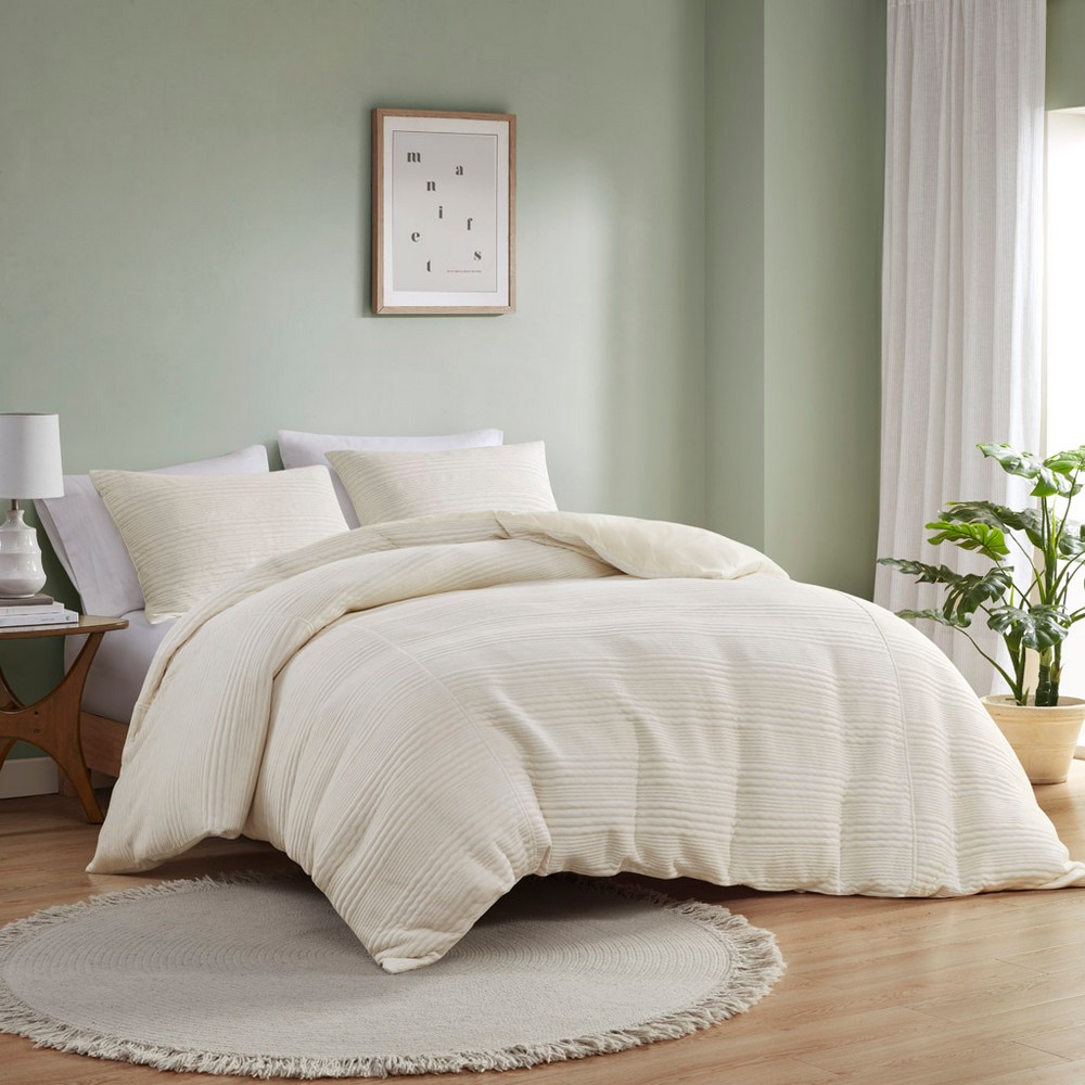 Wyatt 3 Piece Knitted Jersey Duvet Cover Set Ivory Full Queen