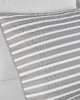 | Intelligent Design Full/Queen 1 Quilt: 88"W x 90"L 2 Standard Shams: 20"W x 26"L (2) 1 Decorative Pillow: 12"W x 16"L 1 Decorative Pillow: 16"W x 16"L Quilt/Sham: 100% polyester peach skin, printed, 100% brushed polyester reverse, 200gram 90% cotton, 10% other fiber filling Pillow: polyester cover and polyester filling Casual Style Includes 5 Piece(s) MACHINE WASH COLD, GENTLE CYCLE, AND SEPARATELY. DO NOT BLEACH. TUMBLE DRY LOW, REMOVE PROMPTLY, DO NOT IRON. IF THERE IS NO FREE MOVEMENT IN THE WASHER OR DRYER, USE LARGE CAPACITY COMMERCIAL WASHER/DRYER. Give your bedroom a fresh new look with the Intelligent Design Paul Reversible Quilt Set. This quilted quilt features a modern striped print with wide and thin stripes in white, grey, navy, and teal with a solid grey reverse to create a handsome look. The 2 matching shams (1 in Twin/TwinXL) also showcase a simple stripe pattern that pairs perfectly with the comforter, while 2 decorative pillows add the finishing touches. Machine washable for easy care, this striped quilt set uses an antimicrobial treatment that provides built-in freshness protection, reducing the growth of odor causing bacteria to keep fabric lasting longer. |
