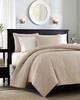 | Madison Park King/Cal King 1 Quilt: 104"W x 94"L 2 king shams: 20"W x 36"L (2) Fabric: 100% polyester microfiber face and reverse Filling: 90% cotton, 10% olefin Pre-washed; All-over quilting Transitional Style Includes 3 Piece(s) Machine Washable The Madison Park Quebec Reversible Quilt Set offers a charming cottage-inspired update to your bedroom. The quilt and shams (1 in Twin/TwinXL) flaunt a classic stitch pattern that creates a rich depth and texture on the face of the bedding set. Prewashed cotton filling provides added comfort and durability making it the perfect for use in the summer or as a layering piece in the winter. This quilt also has an antimicrobial treatment that provides built-in freshness protection, reducing the growth of odor causing bacteria to keep fabric lasting longer. |