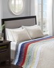 | Madison Park Full 1 Bedspread: 96"W x 110"L 2 Standard Shams: 20"W x 26"L (2) Fabric: 100% polyester microfiber face and reverse Filling: 90% cotton, 10% olefin Pre-washed; All-over quilting Transitional Style Includes 3 Piece(s) Machine Washable The Madison Park Quebec Reversible Bedspread Set offers a charming cottage-inspired update to your bedroom. The reversible bedspread and shams (1 in Twin/TwinXL) flaunt a classic stitch pattern that creates a rich depth and texture on the face of the bedding set. Prewashed cotton filling provides added comfort and durability, while the oversized dimensions allow the bedspread to drape better. This bedspread also has an antimicrobial treatment that provides built-in freshness protection, reducing the growth of odor causing bacteria to keep fabric lasting longer. |