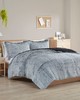| Intelligent Design King/Cal King 1 Comforter: 104"W x 90"L 2 King Shams: 20"W x 36L + 2"D (2) Comforter: Solid 100% polyester back printed shaggy long fur to 100% polyester plush reverse, polyester fiber filling, end-to-end box quilting with knife edge Sham: Solid 100% polyester shaggy long fur to 100% polyester plush, 3" overlap on back open Glam/Luxury Style Includes 3 Piece(s) Wash Mahine The Intelligent Design Malea Shaggy Long Fur Comforter Mini Set brings a soft contemporary update to your bedroom. The comforter and shams (1 in Twin/TwinXL) feature stylish shaggy faux fur that creates a soft fluffy texture and modern look. The solid plush reverse adds a soft and warm touch. Items in the set may come in a rolled or compressed packaging, which will need to be fluffed up or steam ironed before use to remove wrinkles. |