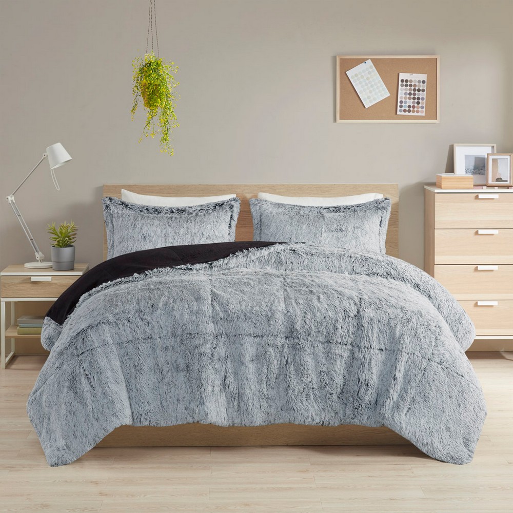 The Intelligent Design Malea Shaggy Long Fur Comforter Mini Set brings a soft contemporary update to your bedroom. The comforter and shams (1 in Twin/TwinXL) feature stylish shaggy faux fur that creates a soft fluffy texture and modern look. The solid plush reverse adds a soft and warm touch. Items in the set may come in a rolled or compressed packaging, which will need to be fluffed up or steam ironed before use to remove wrinkles.