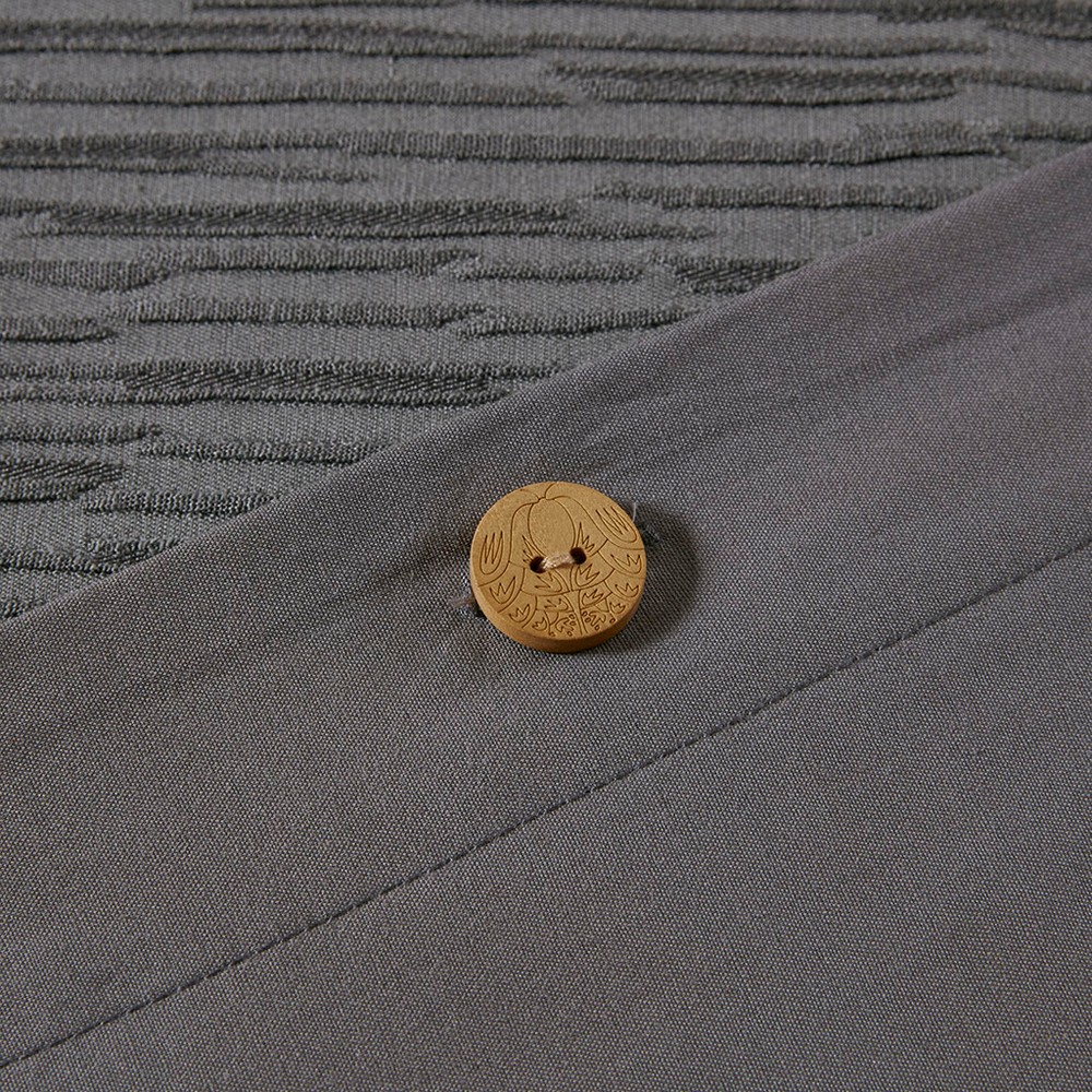 | N Natori Full/Queen 1 Duvet Cover: 92"W x 96"L 2 Standard Shams: 20"W x 26"L (2) Duvet and sham Face: Poly/Cotton yarn dyed fabric pieced with cotton percale binding; Reverse: cotton percale solid. Button closure. Transitional Style Includes 3 Piece(s) Machine Washable Express your unique style with yarn dyed textural appeal of the N Natori Hanae 3 Piece Duvet Cover Set. The oversized grey duvet cover flaunts a textured fabric that adds dimension to the top of the bed and creates a cottage-inspired allure. Two matching shams feature a textured face with a solid reverse to pair beautifully with the duvet cover, completing the luxurious bedding set. With a fine attention to detail, this duvet cover set provides a glamorous update for your bedroom and is machine washable for easy care. Button closures allow you to place a comforter insert within the duvet cover and hidden tie-backs on the corners help prevent it from shifting (insert not included). Complete the look with the coodinating Hanae bedding accessories - Euro shams and decorative pillows that are sold separately. |