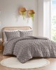 | Intelligent Design King/Cal King 1 Comforter: 104"W x 90"L 2 King Shams: 20"W x 36"L (2) Comforter/Sham: 100% polyester clip jacquard fabric face; soft brushed microfiber reverse, solid dyed. Antimicrobial treatment. Filling: 100% polyester, bar tack stitching Sham overlap opening at back. Modern/Contemporary Style Includes 3 Piece(s) Machine wash cold separately, gentle cycle. Do not bleach. Tumble dry low. Steam Iron Only. If there is no free movement in washer/dryer, use large capacity commercial washer/dryer. Refresh your bedroom with the elegant style of Intelligent Design's Lucy Clip Jacquard Comforter Set. This beautiful comforter features fun and playful clip jacquard pompoms all over the face that add dimension to the top of the bed for a lovely look. The matching shams (1 in Twin/TwinXL) also flaunt the delicate design of the comforter to complete the jacquard bedding set. Hypoallergenic polyester filling in the fashionable comforter contains no allergens and is treated to be dustproof. Machine washable for easy care, this elegant comforter set is OEKO-TEX certified, meaning it does not contain any harmful substances or chemicals to ensure quality comfort and wellness. An antimicrobial treatment helps reduce the growth of odor causing bacteria and keeps fabric lasting longer. Items may come in rolled or compressed packing and will need to be fluffed up. Use a steam iron to help remove wrinkles easier. |