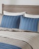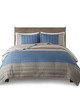 | Madison Park King/Cal King 1 Quilt: 104"W x 94"L 2 King Shams: 20"W x 36"L (2) Quilt/Sham: 100% polyester printed soft microfiber face and reverse; Fabric with antimicrobial treatment Fill: 100% polyester Casual Style Includes 3 Piece(s) Machine Washable Bring a cozy casual vibe to your bedroom with the Madison Park Blake quilted quilt set. A color block design in soft neutral and blue colors are printed on the face of the quilt and complemented by a solid taupe reverse, for a farmhouse look. The channel quilting adds texture and the polyester filling provides plenty of warmth, making it great for single use in the summer or as an extra layer in the winter. |