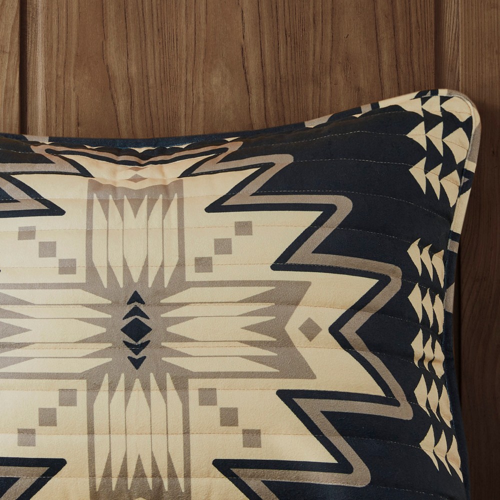 | Woolrich Full/Queen 1 Quilt: 92"W x 92"L 2 Standard Shams: 20"W x 26"L(2) Quilt: 100% polyester Print Plush to Solid Softspun, Poly Fiber Filling with channel Quilting Sham: 100% polyester Print Plush to Solid Softspun, Overlap Open Southwest Style Includes 3 Piece(s) Machine Wash The Woolrich Sierra Print Plush Quilt Set offers a warm and inviting lodge update to your bedroom. This plush comforter features a tan and black over-scaled Aztec print with 2 coordinating shams to create a charming cabin look. Both sides of the quilt have soft and cozy plush that provides year-round warmth and comfort. Machine washable for easy care, this plush quilt set is OEKO-TEX certified, meaning it does not contain any harmful substances or chemicals to ensure quality comfort and wellness. Items in the set may come in a rolled or compressed packaging, which will need to be fluffed up or steam ironed before use to remove wrinkles. |