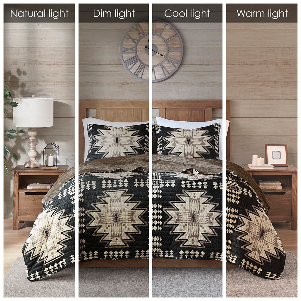 Sierra Oversized Print Plush Quilt Set Tan Black Full Queen