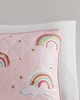 Alicia Rainbow with Metallic Printed Stars Reversible Quilt Set with Throw Pillow Pink Full Queen