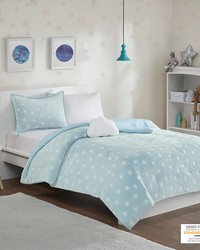 Quinny Glow In The Dark Plush Comforter Set Aqua Full Queen