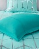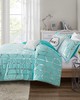 | Intelligent Design King/Cal King 1 Comforter: 104"W x 90"L 2 King Shams: 20"W x 36"L + 1"D (2) 1 Decorative Pillow: 12"W x 16"L 1 Decorative Pillow: 16"W x 16"L Comforter / Sham: Face:100% polyester brushed microfiber, with metallic printing Back: 100% polyester brushed micro fiber, solid Filling: 100% polyester 200gsm Pillow: polyester cover and polyester filling Modern/Contemporary Style Includes 5 Piece(s) Machine wash cold separately, gentle cycle. Do not bleach. Tumble dry low. Do not iron. If there is no free movement in washer/dryer, use large capacity commercial washer/dryer. Spot clean pillows. Freshen up your bedroom with the enchanting style of Intelligent Design’s Raina Comforter Set. The stunning comforter flaunts a geometric, metallic silver print against a vibrant aqua ground for a fun and eye-catching look! Matching sham(s) echo the design seen on top of the bed to pull the entire ensemble together. Two embroidered decorative pillows with typography and metallic details complete this fabulous, ultra-soft microfiber comforter set. Set includes comforter, 2 shams (1 sham in Twin/TwinXL), 1 oblong and 1 square decorative pillows. This bedding set uses an antimicrobial treatment that provides built-in freshness protection, reducing the growth of odor causing bacteria to keep fabric lasting longer. Items in the set may come in a rolled or compressed packaging, which will need to be fluffed up or steam ironed before use to remove wrinkles. |