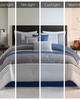 Greer 7 Piece Color Block Stripe Comforter Set with Throw Pillows Blue Queen