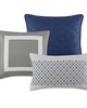 | Madison Park Queen 1 Comforter: 90"W x 90"L 2 Standard Shams: 20"W x 26"L (2) 1 Bedskirt: 60"W x 80"L + 15"D 1 Square Throw Pillow: 18"W x 18"L 1 Oblong Throw Pillow: 12"W x 18"L 1 Square Throw Pillow: 16"W x 16"L Comforter/Sham: Solid soft microfiber, pieced pinsonic face, solid microfiber reverse Fill: 100% polyester Pillow: Microfiber cover with polyester fill Bedskrit: Microfiber drop, non-woven platform Modern/Contemporary Style Includes 7 Piece(s) Machine washable, spot clean pillows Perfect update to the bedroom, this transitional microfiber comforter set features printed and pinsonic techniques pieced together in a striped colorblock design. The three throw pillows are embellished with embroidery, piecing and more pinsonic techniques. A matching bed skirt is included to complete the look. This bedding set is available in a grey and blue combination or a spice, taupe, oatmeal combination. The comforter and pillows are filled with hypoallergenic polyester filling that is dustproof, ensuring a restful and comfortable sleeping experience. This OEKO-Tex certified bedding set can also be machine washed and is extra durable for long lasting comfort. |