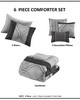 | Madison Park King/Cal King 1 Comforter: 104"W x 92"L 2 King Shams: 20"W x 36"L (2) 1 Throw Pillow: 18"W x 18"L 1 Throw Pillow: 12"W x 18"L 1 Throw Pillow: 16"W x 16"L Comforter and Sham: 100% polyester jacquard, microfiber solid back Fill: Polyester filling Decorative Pillows: Polyester Traditional Style Includes 6 Piece(s) Machine washable, spot clean pillows This traditional jacquard comforter set features an elegant ogee design pieced with solid stripes in a vertical layout for an opulent bedroom update. The three throw pillows featuring pintucks, woven jacquard, and embroidery help complete the set. Available in two options: stylish black with silver and grey or a lavish teal with silver and grey. The comforter and pillows are filled with hypoallergenic polyester filling that is dustproof, ensuring a restful and comfortable sleeping experience. This bedding set can also be machine washed and is extra durable for long lasting comfort. |