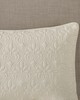 | Madison Park Queen 1 Bedspread: 60"W x 80"L + 24"D 2 Standard Shams: 20"W x 26"L (2) Soft microfiber solid face and back bedspread, 100% polyester fill Transitional Style Includes 3 Piece(s) Machine washable The Madison Park Quebec 3 Piece Quilted Bedspread Set offers a charming cottage-inspired update to your bedroom. The open split-corner bedspread and shams flaunt a classic stitch pattern that creates a rich depth and texture on the face of the bedding set. All-over quilted box sewing keeps the filling secure, while the 24-inch drop sides create a clean draped look with pleated corners. It is available in four different colors including a soft cream, dark grey, rich taupe, and vibrant navy. This fitted bedspread also has an antimicrobial treatment that provides built-in freshness protection, reducing the growth of odor causing bacteria to keep fabric lasting longer. |