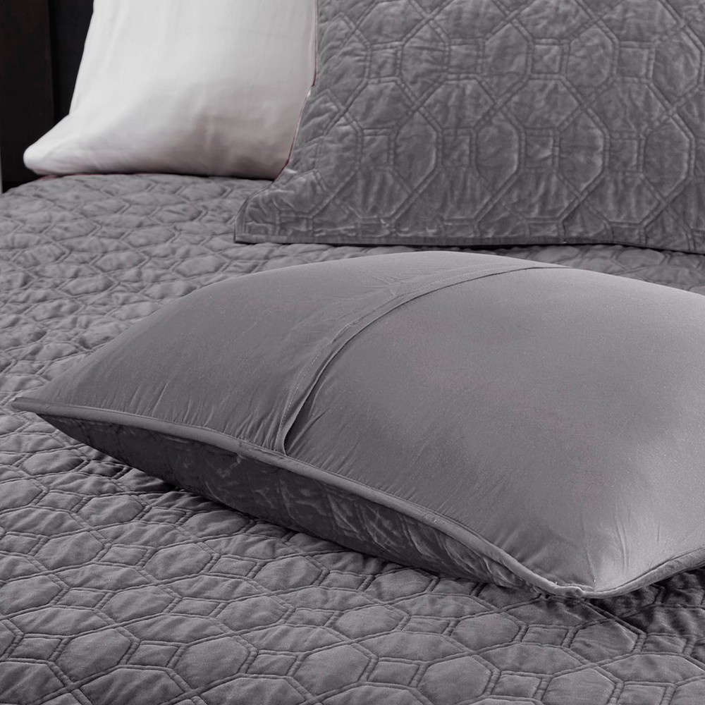 | Madison Park King/Cal King 1 Quilt: 104"W x 94"L 2 King Shams: 20"W x 36"L + 0.5"D (2) Quilt/Sham: 100% polyester velvet with quilted face, microfiber reverse Fill: 90% Cotton, 10% other fiber filling Prewash Finish Glam/Luxury Style Includes 3 Piece(s) Machine Wash Cold Tumble Dry Low The Madison Park Harper Velvet 3 Piece Quilt Set offers a casual and comfortable update to your bedroom. The polyester velvet quilt features a soft texture with a geometric quilted design, for a rich look and feel. Matching shams pair beautifully with the quilt to complete the quilt set. Providing a charming layering piece to your bed, this quilt has an antimicrobial treatment that helps reduce bacteria buildup and odors, keeping the fabric fresh longer. |
