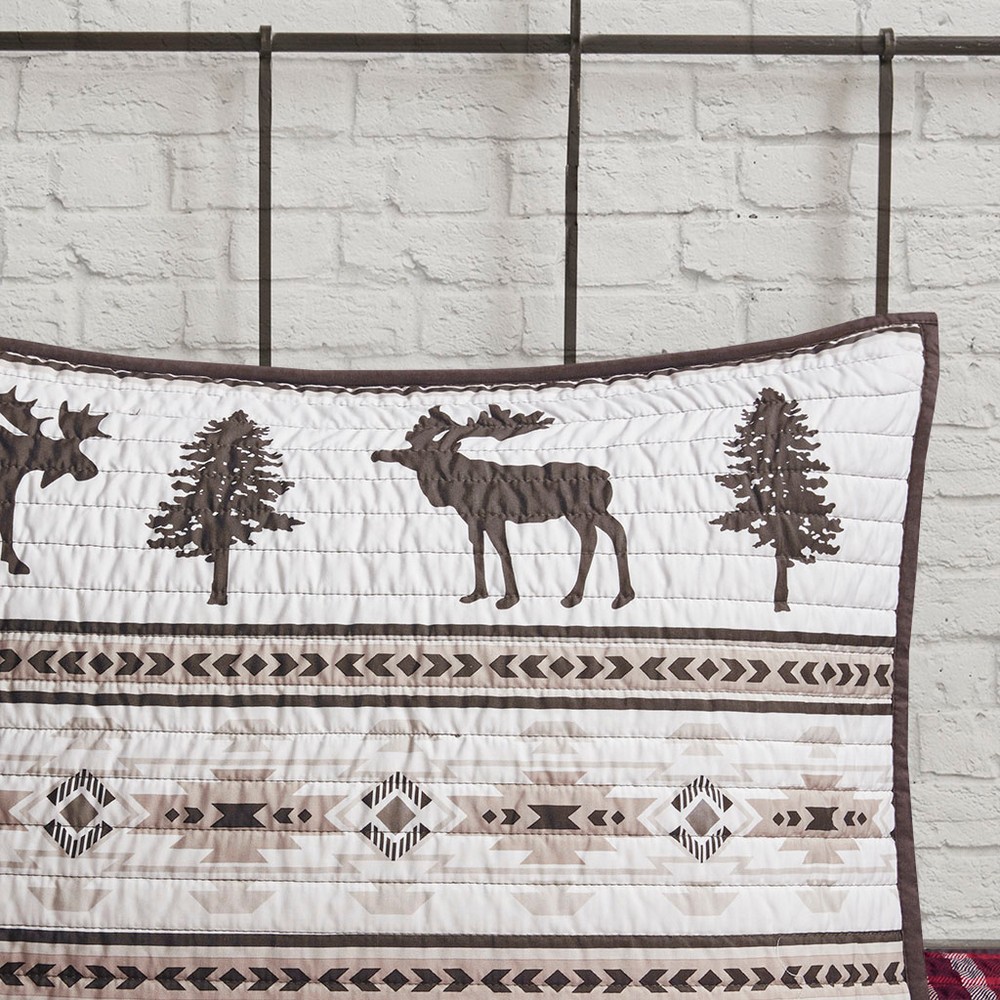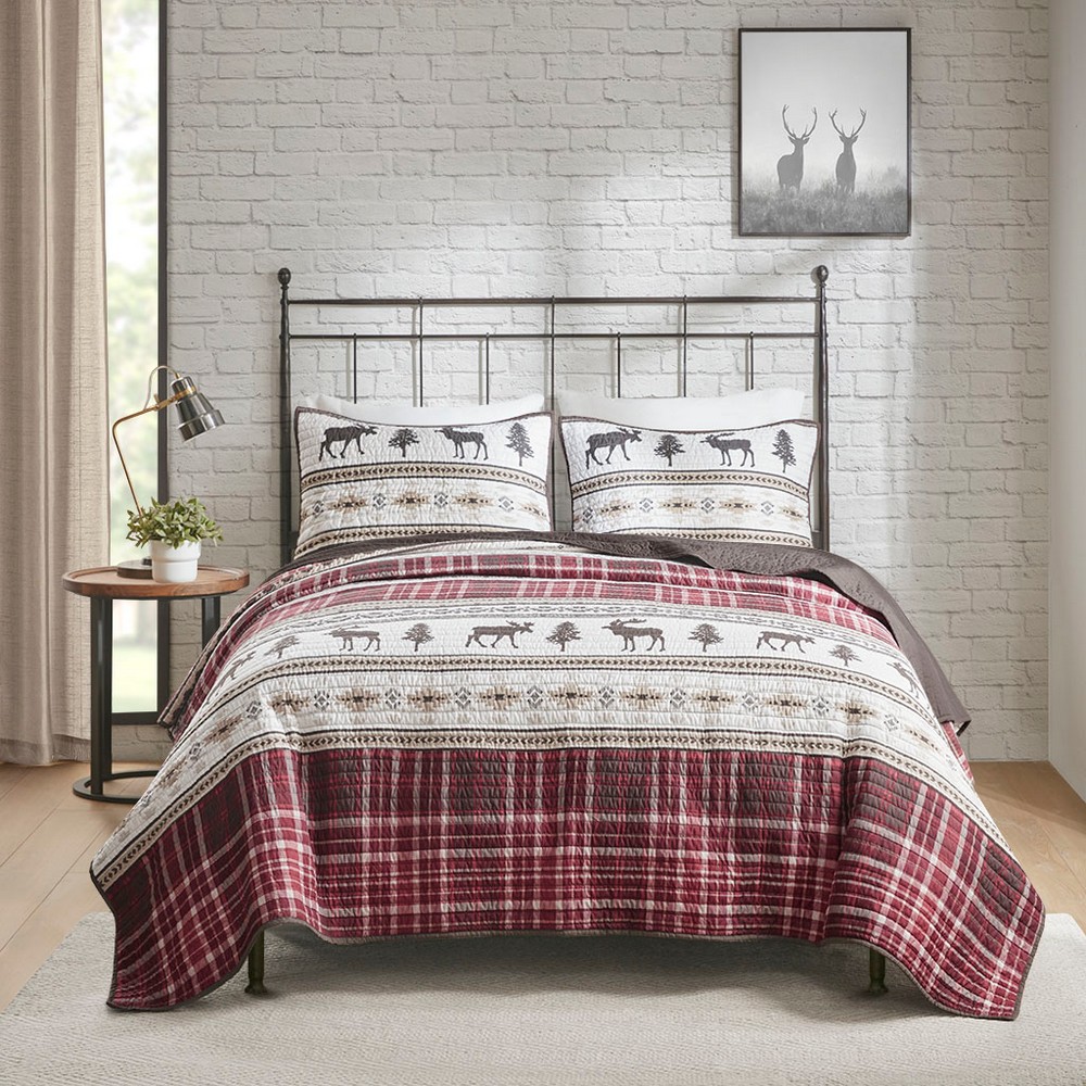 | Woolrich King/Cal King 1 Quilt: 110"W x 96"L 2 King Shams: 20"W x 36"L(2) Quilt/sham: 100% polyester microfiber Filling: 90% cotton, 10% polyester Pre-washed Lodge/Cabin Style Includes 3 Piece(s) Machine wash cold, gentle cycle, and separately. Do not bleach. Tumble dry low, remove promptly, do not iron. If there is no free movement in the washer or dryer, use large capacity commercial washer/dryer. Create a charming cabin retreat in your bedroom with the Woolrich winter valley oversized 3 piece microfiber quilt set. The oversized quilt and shams feature a red and brown plaid with animal motifs, for an inviting look. Soft cotton filling in the quilt provides exceptional comfort and added durability, making it perfect to use in the summer or as an added layer for extra warmth in the winter. Prewashed to avoid shrinkage, this microfiber quilt set is machine washable for easy care and brings a soft and warm addition to your space. |