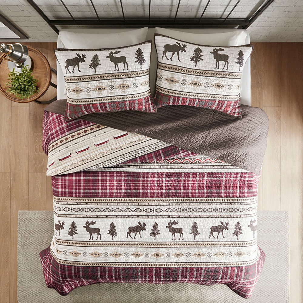 Winter Valley Oversized 3 PC Microfiber Quilt Set Red Brown King