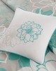 | Madison Park Twin/Twin XL 1 Comforter: 68"W x 90"L 1 Standard Sham: 20"W x 26"L 1 Bedskirt: 39"W x 75"L + 15"D 1 Decorative Pillow: 18"W x 18"L 1 Decorative Pillow: 16"W x 16"L 1 Decorative Pillow: 12"W x 20"L Cotton sateen, printed, comforter, polyester filling ; cotton/polyester bedskirt and pillows Transitional Style Includes 6 Piece(s) Machine Washable The Madison Park Lola Comforter Set transforms your bedroom into a beautiful and graceful space. A gorgeous floral print in a soft white and aqua hue pops against the solid taupe grey ground cotton sateen comforter and shams (1 for Twin/Twin XL Sizes) for a stunning transitional look. Three decorative pillows with embroidered details and fabric manipulation add texture and dimension to the bed, featuring a aqua and grey stripe, a grey and aqua flowers on soft white, and a solid aqua color. A solid taupe grey bed skirt completes the look with sophistication. This bedding set is also OEKO-TEX certified, meaning it is free of any harmful substances or chemicals for your comfort and wellness. The items in the set may arrive in a rolled or compressed packaging, which will need to be fluffed up or steam ironed before use to smooth out the wrinkles. |