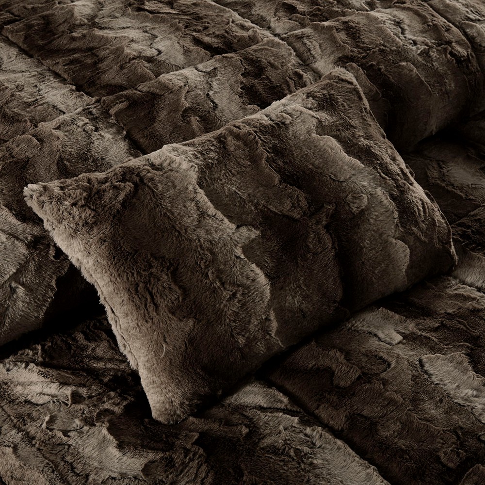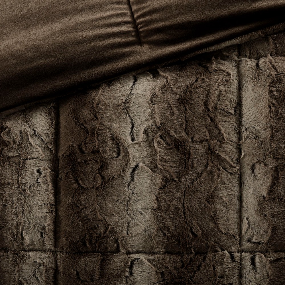 Zuri 4PC Faux Fur Comforter Set Brown Full Queen