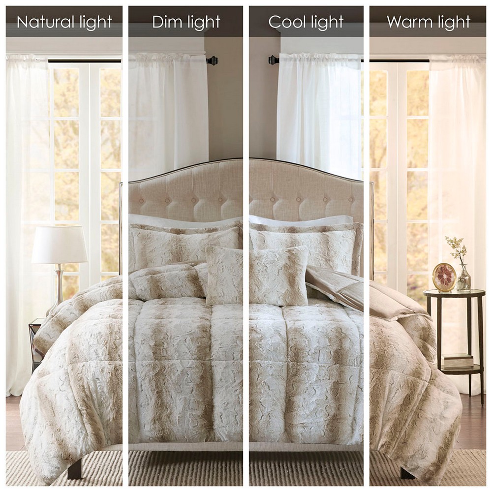 Zuri 4PC Faux Fur Comforter Set Sand Full Queen