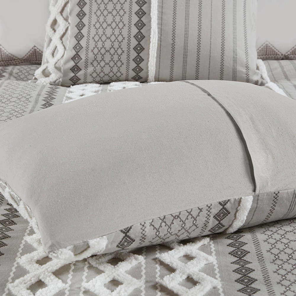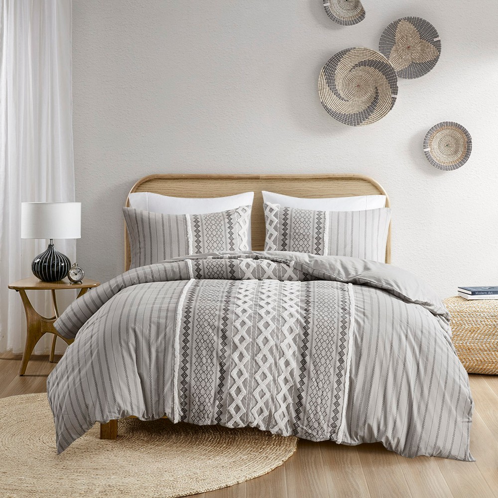 Imani Cotton Printed Duvet Cover Set with Chenille Gray Full Queen
