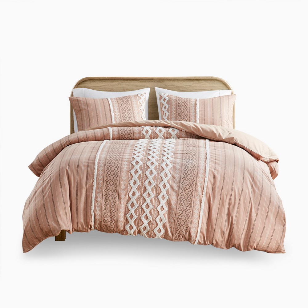 Imani Cotton Printed Duvet Cover Set with Chenille Blush Full Queen