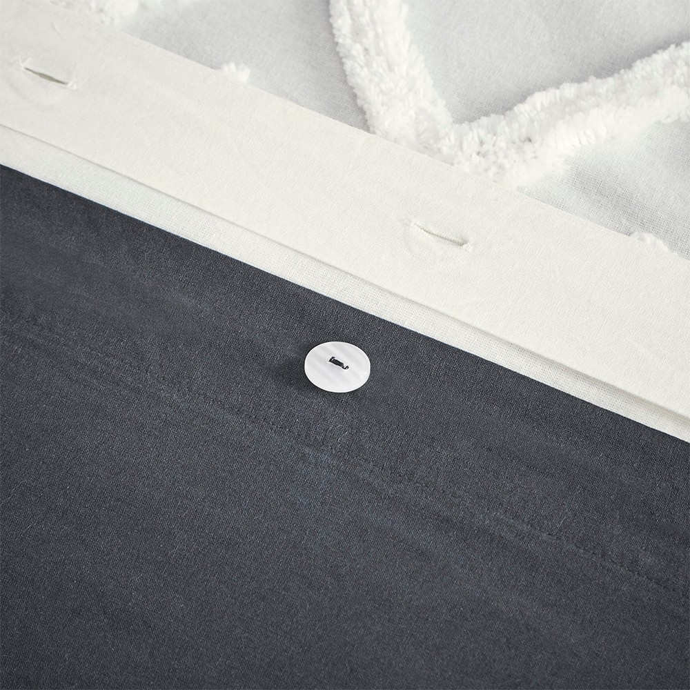 Mila 3 Piece Cotton Duvet Cover Set with Chenille Tufting Gray Full Queen