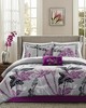 | Madison Park Essentials Twin 1 Comforter: 68"W x 86"L 1 Standard Sham: 20"W x 26"L 1 Bed Skirt: 39"W x 75"L + 15"D 1 Flat Sheet: 66"W x 96"L 1 Fitted Sheet: 39"W x 75"L + 12"D 1 Pillowcase: 20"W x 30"L 1 Decorative Pillow: 12"W x 18"L Comforter & Sham: micro fiber 85gsm print on face, micro fiber 85gsm solid reverse Filling: 250g/m2 polyester Bedskirt: micro fiber 85gsm Sheet sets: 100% cotton 180TC print Pillow: polyester cover and polyester filling Transitional Style Includes 7 Piece(s) Machine wash cold, gentle cycle, and separately. Do not bleach. Tumble dry low, remove promptly. Do not iron. If there is no free movement in the washer or dryer, use large capacity commercial washer/dryer. Make a bold fashion statement in your bedroom with the Madison Park Essentials Claremont Comforter Set with Cotton Sheet Set. A large scale bright purple and black floral print covers the grey comforter, creating a striking look. The solid purple reverse complements the top of the bed, while matching shams (1 for Twin Sizes) pair perfectly with the comforter. One bright purple decorative pillow adds another dramatic touch and a complete sheet set with an ogee print completes the set. Bringing the best in health and wellness, this bedding set also features an anti-microbial treatment that provides built-in freshness protection, reducing the growth of odor causing bacteria and keeps fabric lasting longer. This bedding set is also OEKO-TEX certified, meaning it does not contain any harmful substances or chemicals, ensuring quality comfort and wellness. This bedding set may come in rolled or compressed packing and will need to be fluffed up. Use a steam iron to help remove wrinkles easier. |
