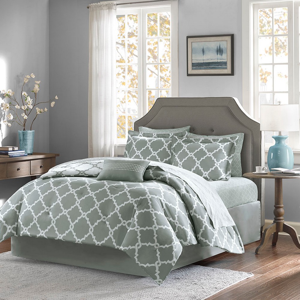 Merritt 7 Piece Comforter Set with Cotton Bed Sheets Grey Twin