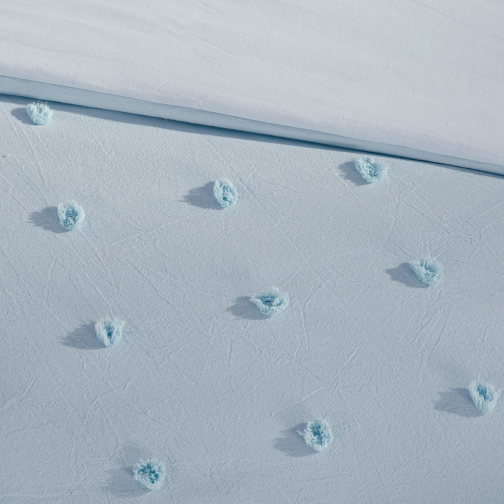 | Urban Habitat Twin/Twin XL 1 Comforter: 68"W x 92"L 1 Standard Sham: 20"W x 26"L 1 Euro Sham: 26"W x 26"L + 0.5"D 1 Decorative Pillow: 18"W x 18"L 1 Decorative Pillow: 12"W x 18"L Comforter/Sham: 100% cotton jacquard fabric on the face, 100% cotton reverse, 220gsm polyester filling Pillow: 100% cotton cover with polyester filling Euro sham: 100% cotton solid with quilting top Shabby Chic Style Includes 5 Piece(s) Machine Wash The Urban Habitat Brooklyn Cotton Jacquard Comforter Set features small tufted chenille dots that create a fresh shabby chic look. This comforter set brings a soft and charming update to your bedroom, while matching shams (1 in Twin/TwinXL) and quilted Euro shams (1 in Twin/TwinXL) complement the cotton jacquard comforter set. Two decorative pillows are also included, adding the finishing touches. The hypoallergenic polyester comforter and decorative pillow filling contains no allergens and is treated to be dustproof so you can sleep soundly without any worries. This comforter set is also OEKO-TEX certified and is machine washable for easy care. |