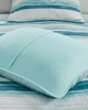 The Madison Park Marina 6 Piece Reversible Quilt Set provides a modern take on the coastal stripe. It's watercolor motif, accented with shades of storm blue, aqua, teal and pastel blue, provides the calming feel of the ocean in your space. Three decorative pillows use embroidered seashells and fabric manipulation to pull this look together.