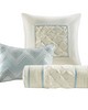 | Madison Park Queen 1 Comforter: 90"W x 90"L 2 Standard Shams: 20"W x 26"L (2) 1 Bed Skirt: 60"W x 80"L + 15"D 1 Decorative Pillow: 12"W x 18"L 1 Decorative Pillow: 18"W x 18"L 1 Decorative Pillow: D6.5" x 18"L Comforter & Sham: 100% polyester polyoni pieced with pleats, 100% polyester brushed fabric back, 270g/m2 poly fill; Transitional Style Includes 7 Piece(s) Machine wash cold, gentle cycle, and separately. Do not bleach. Tumble dry low, remove promptly. Do not iron. If there is no free movement in the washer or dryer, use large capacity commercial washer/dryer. This beautifully tufted bed is from the Laurel bedding collection. Its seafoam coloring makes this set easy to accessorize in your bedroom. The collection is made from 100% polyester polyoni and has pieced fabric sewn together to give this set added dimension. It is finished with a smooth edge of fabric that creates a beautiful border around this comforter. Items in the set may come in a rolled or compressed packaging, which will need to be fluffed up or steam ironed before use to remove wrinkles. |