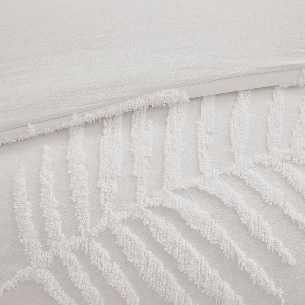 Olliix Bahari 3 Piece Tufted Cotton Chenille Palm Duvet Cover Set Off-White