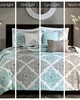 | Madison Park King/Cal King 1 Quilt: 104"W x 94"L 2 King Shams: 20"W x 36"L (2) 1 Decorative Pillow: 18"W x 18"L 1 Decorative Pillow: 16"W x 16"L 1 Decorative Pillow: 12"W x 18"L Quilt/Sham: 100% polyester microfiber, printed, quilted, 100% brushed polyester reverse, 90% cotton, 10% other fiber filling Pillow: 100% polyester microfiber shell, polyester filling Transitional Style Includes 6 Piece(s) Machine washable Pillow spot clean Spruce up your space with the Madison Park Claire 6 Piece Reversible quilt Set. This unique pattern has a small leaf print inside each diamond that makes up this crisscross design. Pops of aqua give the perfect amount of color to add this collection into your neutral space. Three decorative pillows use embroidery and fabric manipulation for the perfect finishing touches to this collection. This bedding set is OEKO-TEX certified, meaning it does not contain any harmful substances or chemicals to ensure quality comfort and wellness. Items in the set may come in a rolled or compressed packaging, which will need to be fluffed up or steam ironed before use to remove wrinkles. |